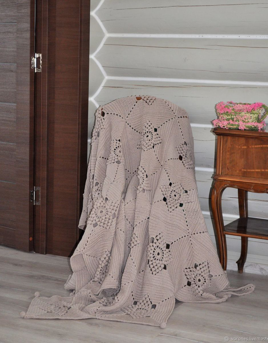 ирландское кружево, плед, ручная авторская работа, плед крючком, покрывало в спальню, связано крючком, покрывало на диван
