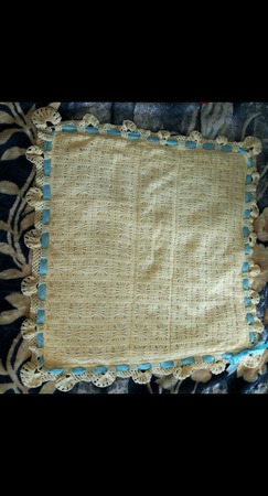 Одеяло вязанное крючком. очень теплое на пуху. Пух вшит в флис. Отлично подходит даже для самых сильных морозов. Прослужит очень долго не только в качестве конверта на выписку, но и как обычное одеяло. Лента достается, можно поменять. Размер внутренней части одеяла 93х87 см, всего одеяла 110х110 см.