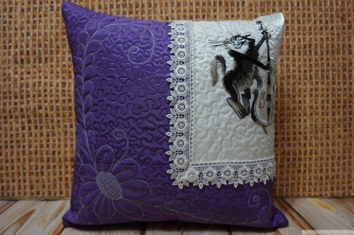 декоративная наволочка украшенная машинной вышивкой и кружевом .машинная стежка.внутри сьемная наволочка ,набита холлофайбером.