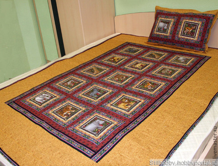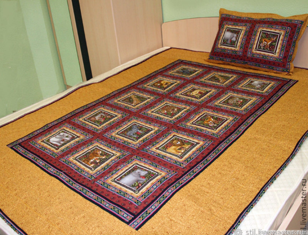 Покрывало в стиле пэчворк выполнено из качественного американского хлопка.Изделие можно стирать в машинке на щедящем режиме.Ткань не садится и не линяет.