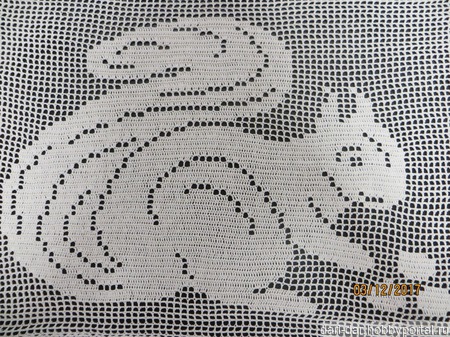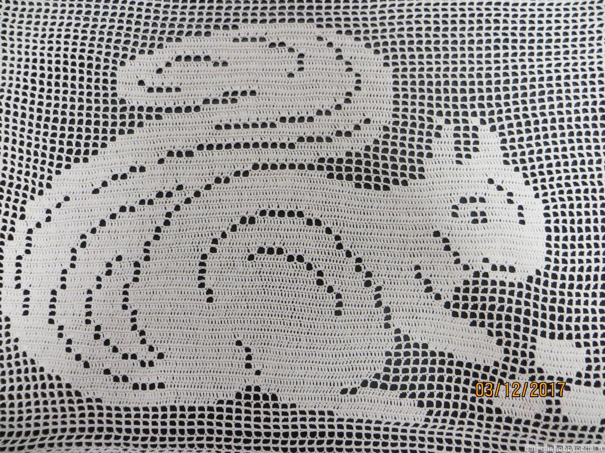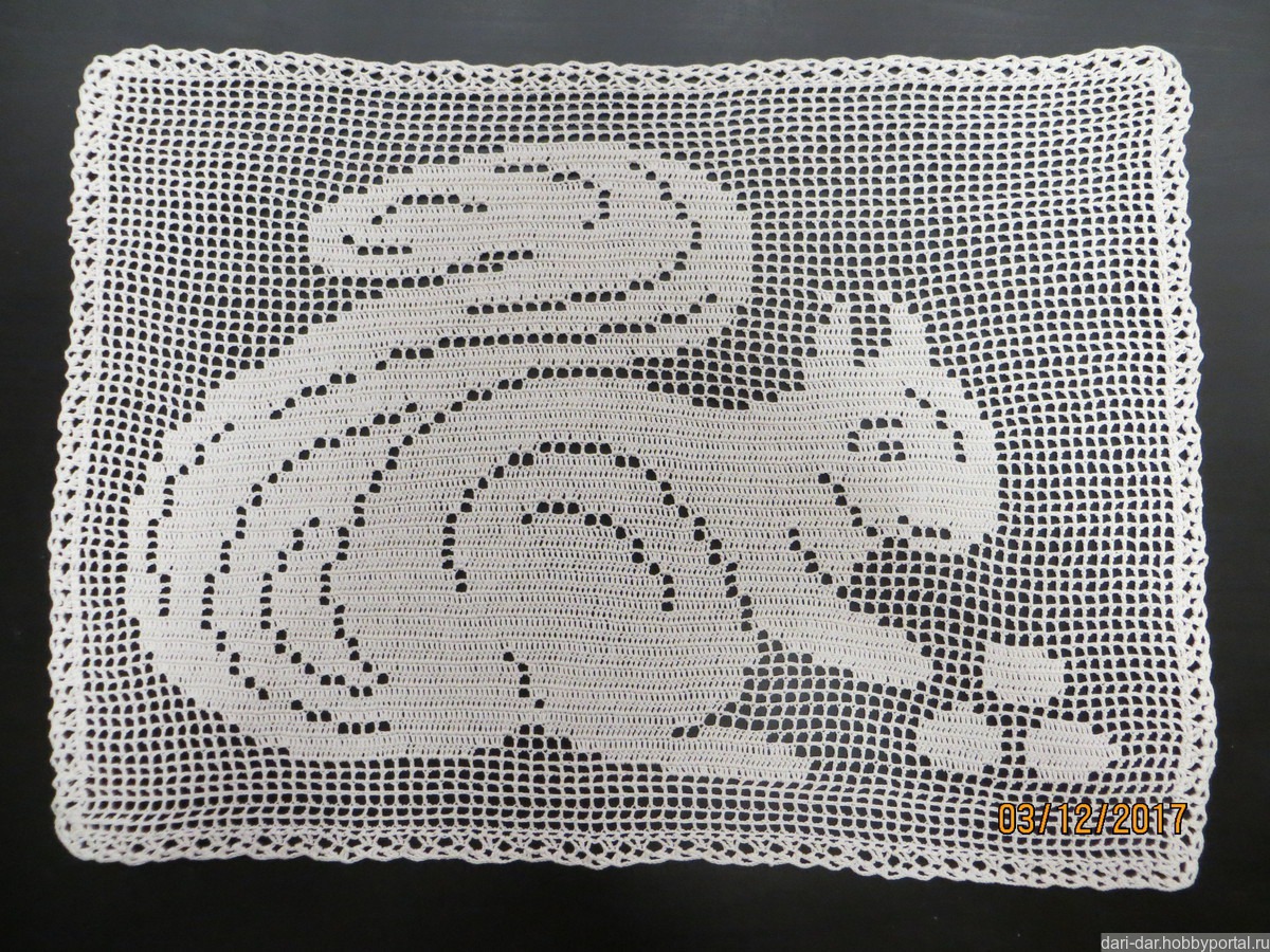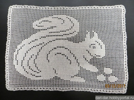 Салфетка "Белочка" выполнена в технике филейное вязание.