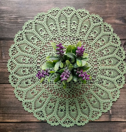 Эта ажурная салфетка связанная из хлопковой пряжи цвета зелёного яблока станет изюминкой интерьера Вашего дома и долго будет обращать на себя внимание гостей. Может стать замечательным подарком для ценителей домашнего уюта.