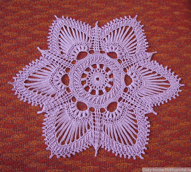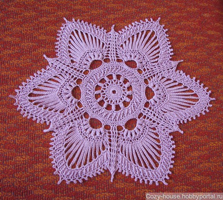 Салфетка связана по дизайну Грейс Ферон. Пряжа Пехорка Успешная сиреневого цвета