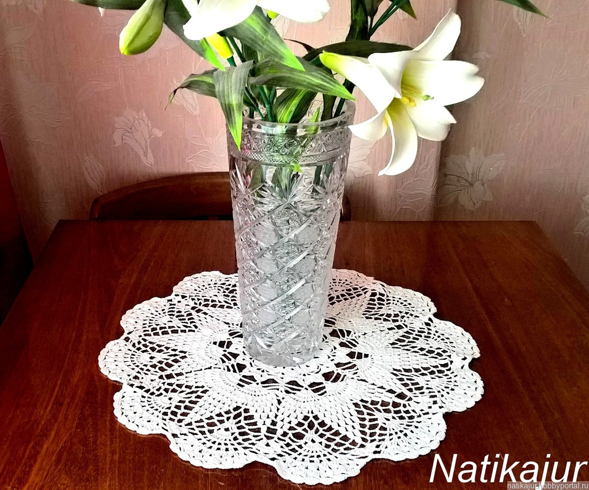 Чтобы заметно преобразить интерьер, совсем необязательно создавать сложные композиции или обращаться к помощи декоратора. Достаточно найти самое выгодное место для одной вазы с цветами, дополнив композицию салфеткой ручной работы, в ажурном узоре которой явно "читается" лилия - удивительный цветок,покоривший весь мир, его описание встречается и в религиозных трактатах,и в древней мифологии, а изображение - в средневековой живописи и на гербах французских королей.
