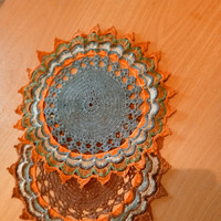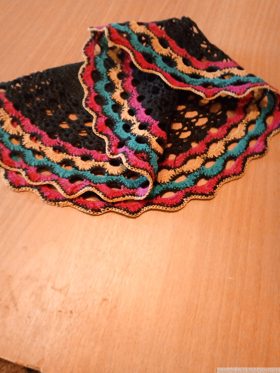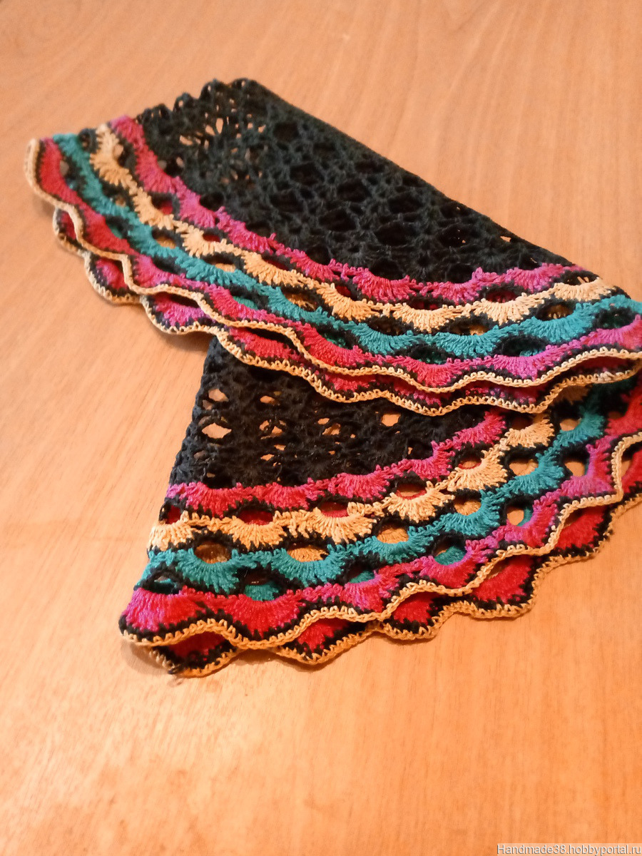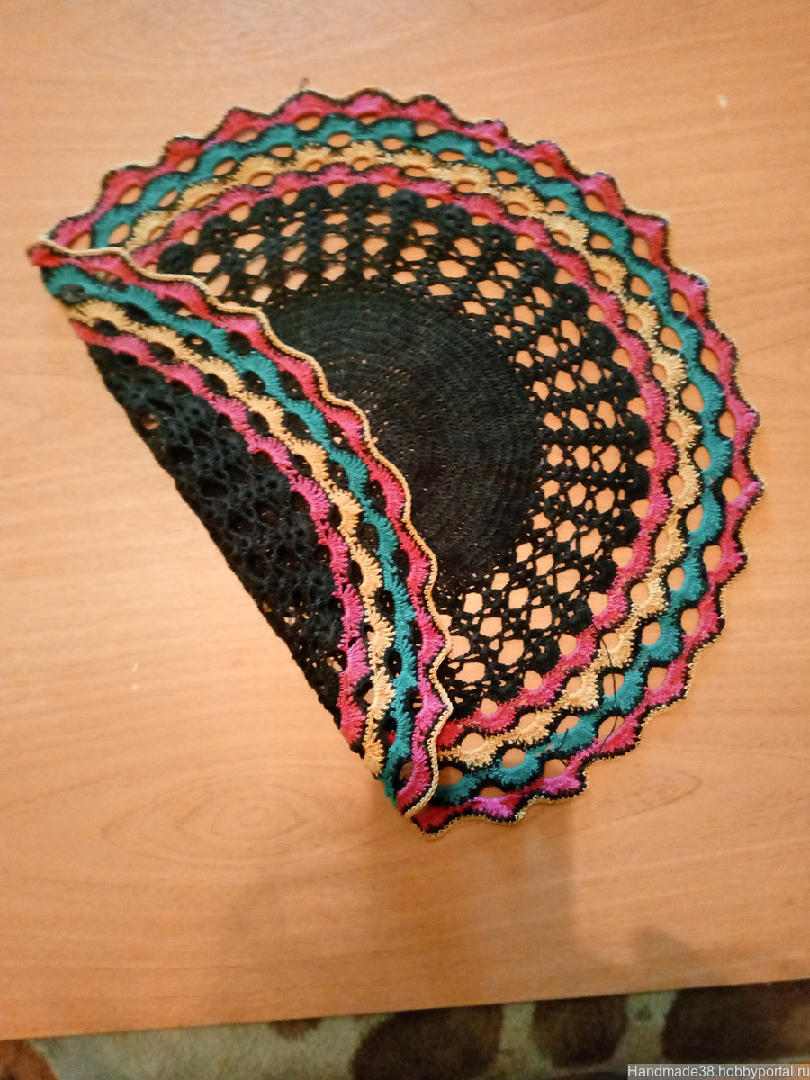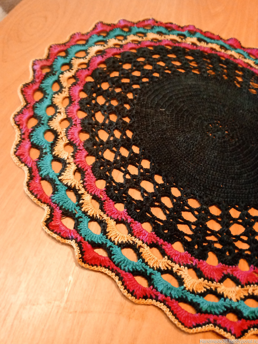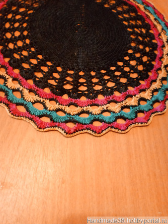 Салфетка связана из хлопковой пряжи разных цветов. Очень красивая салфетка, послужит подарком на Новый Год.Диаметр 45 см. Работа готова к продаже. Доставка :самовывоз из Люберец, СДЕК, почта после предоплаты на карту Сбербанка(цена+почт. расходы)
