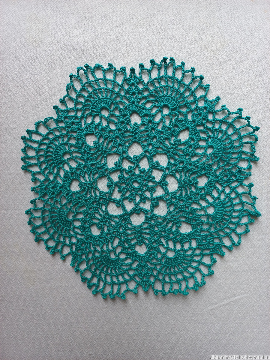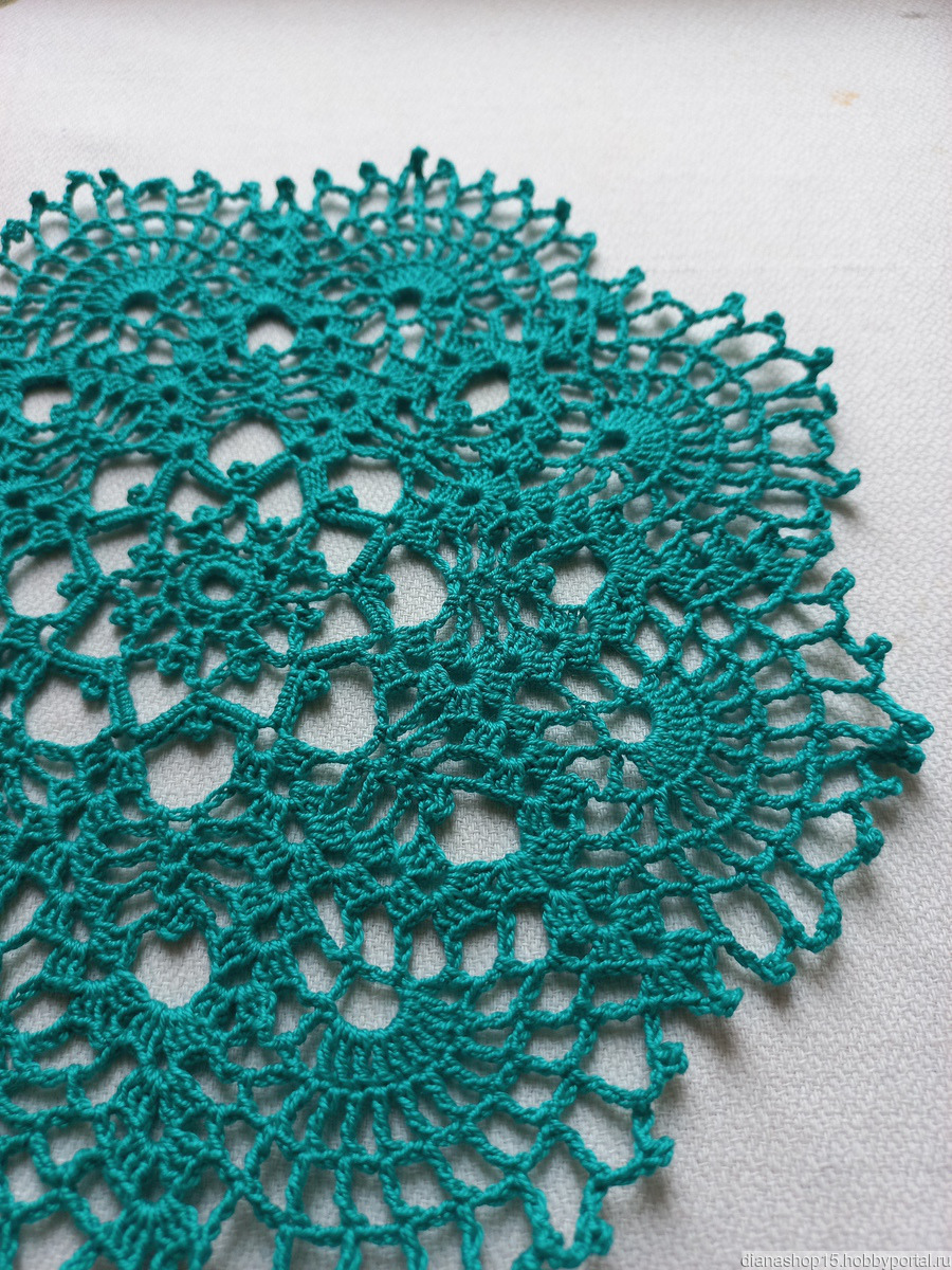 Ажурная салфетка связана вручную из 100% хлопка, размер 20 см в диаметре.