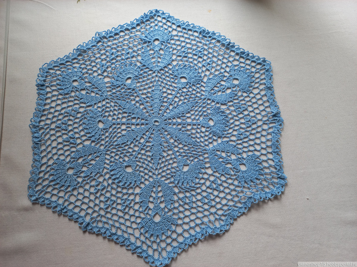 Ажурная салфетка связана вручную из 100% хлопка, размер 39 см в диаметре.