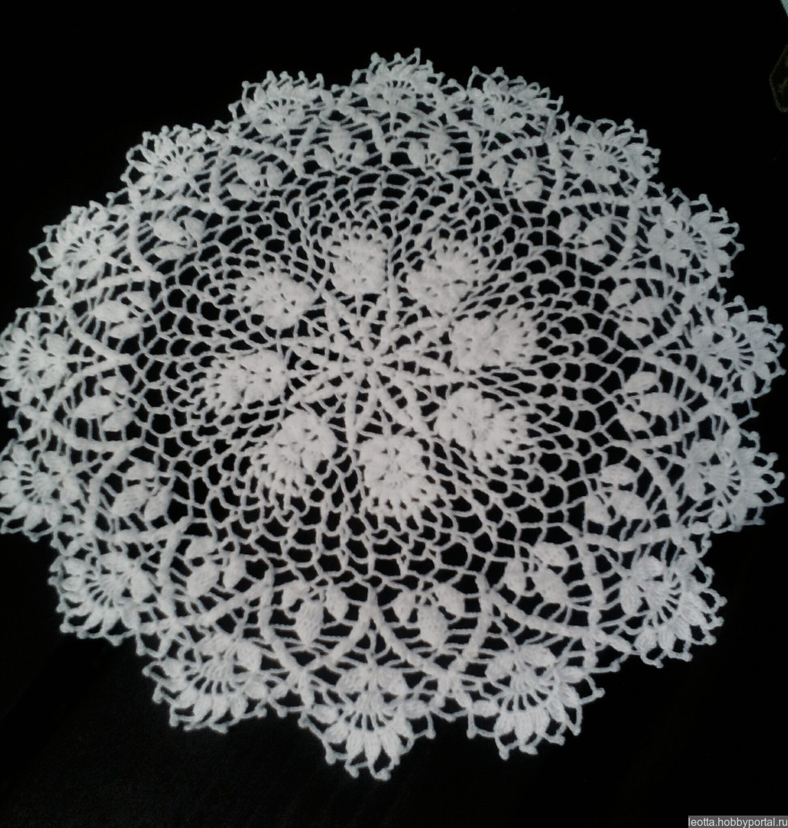 Салфетка диаметром 30 см, очень тонкая работа, кружевная нить, крючок 0,8.