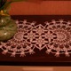Кружевная салфетка как элемент декора ( особенно такой необычной формы, состоящей из центрального квадрата, образующегося из отдельно связанных небольших квадратных мотивов, и боковых круглых) иногда может быть самодостаточна и не требовать поддержки другими средствами, но тем не менее способна изменить привычный облик дома, приковывая к себе восхищенные взоры гостей и позволяя своим обладателям демонстрировать оригинальный вкус.