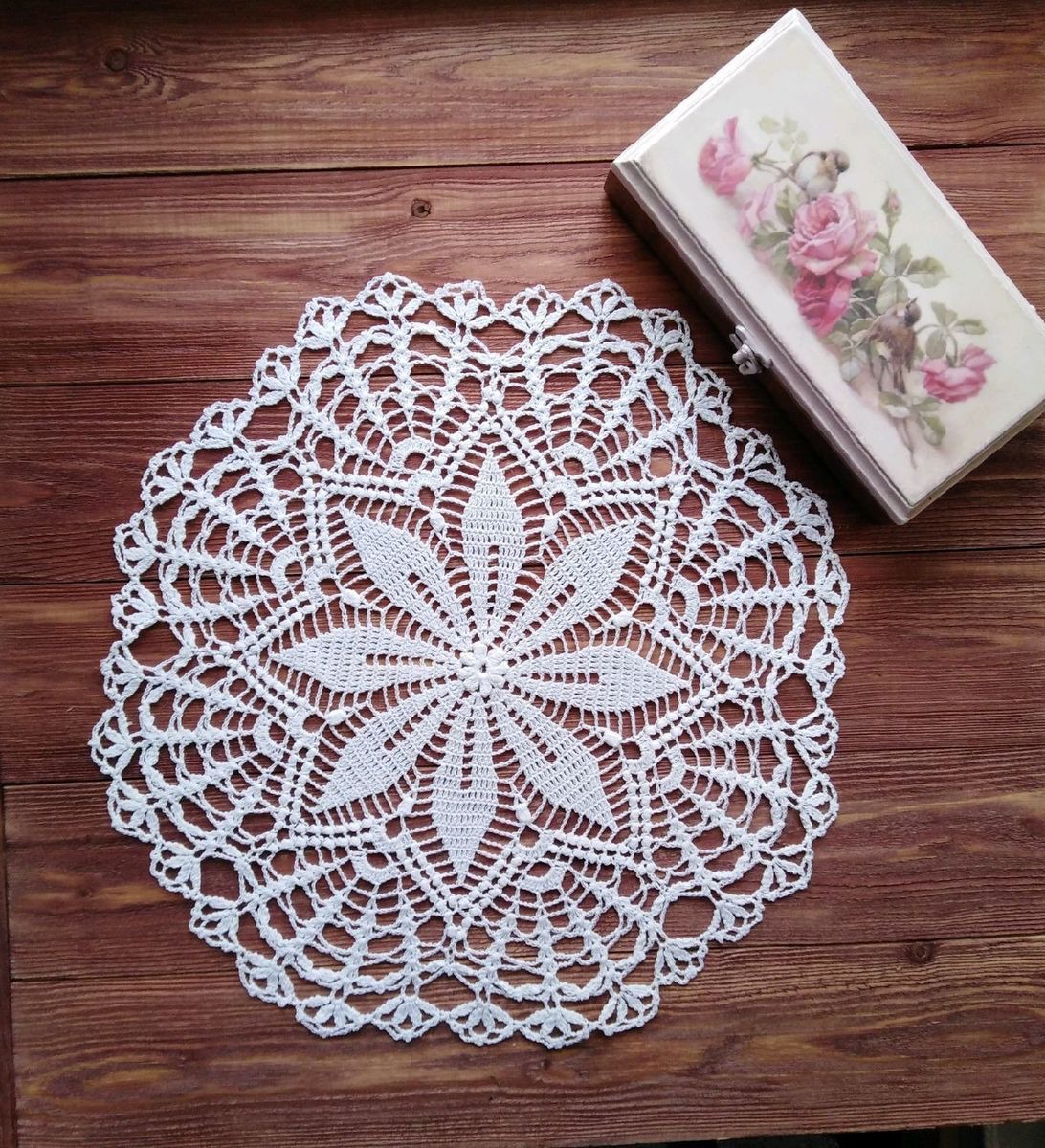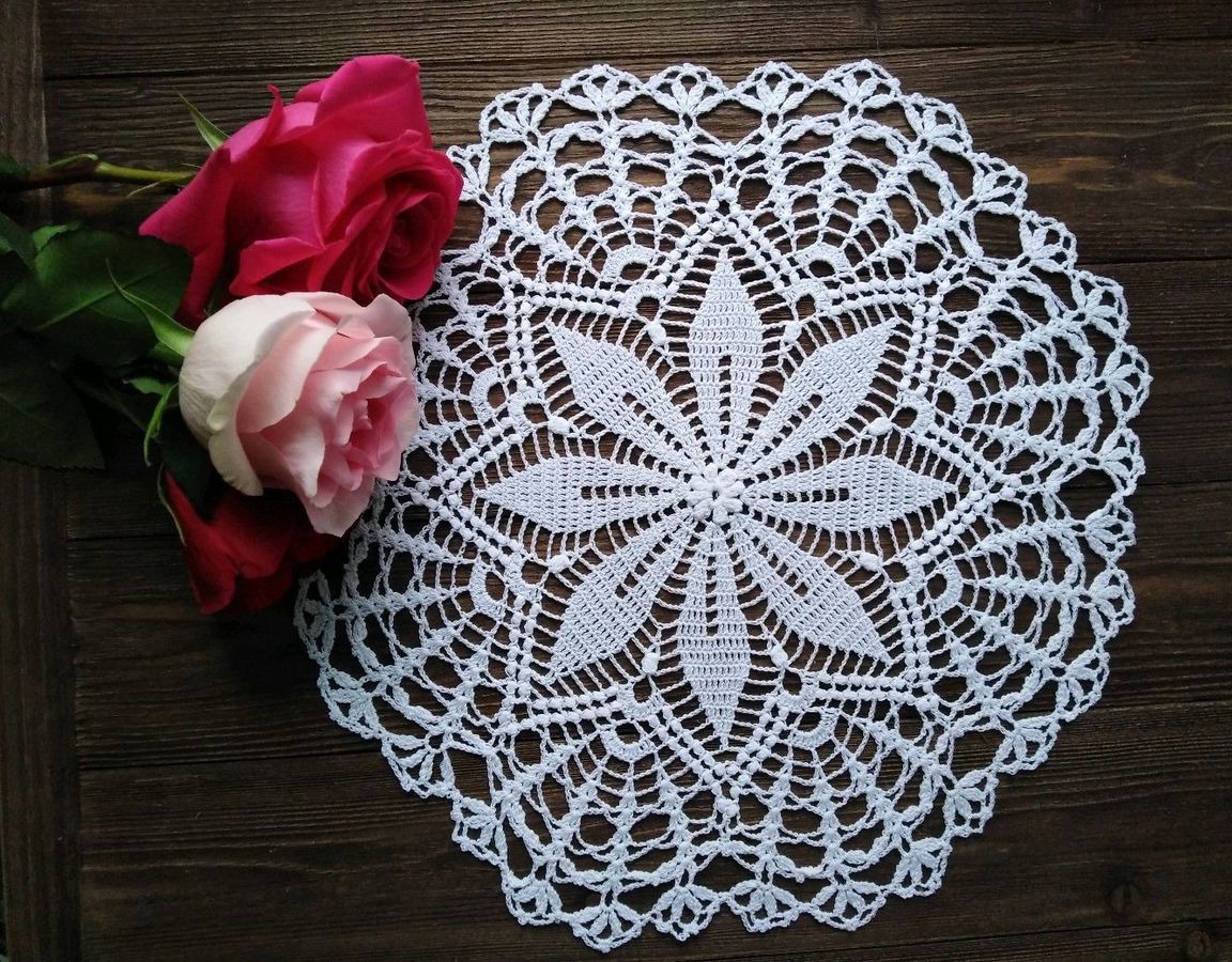 декор для интерьера, салфетка вязаная крючком, круглая салфетка, белая салфетка, винтажная салфетка, свадебный декор стола, ажурная салфетка крючком