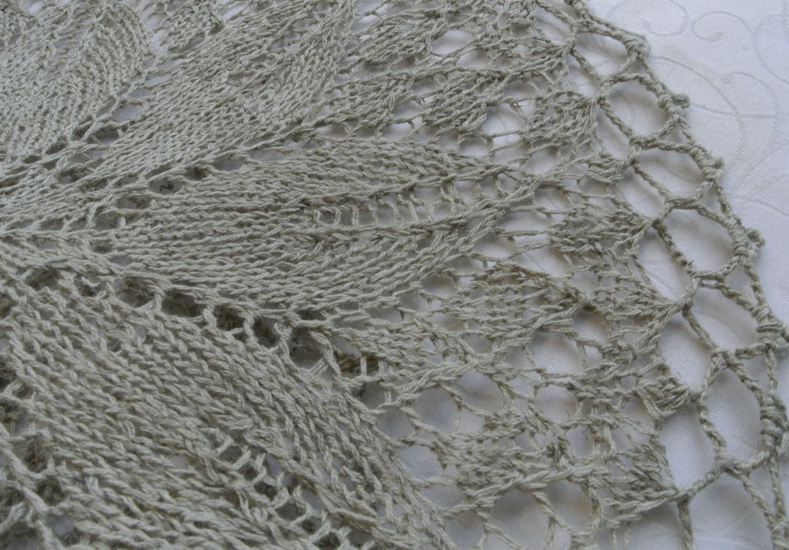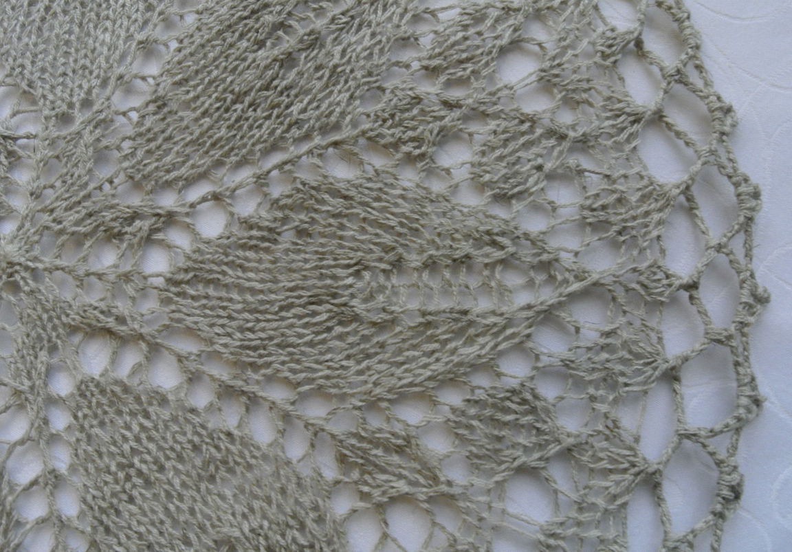 Небольшая ажурная салфетка связана спицами из льна с хлопком.