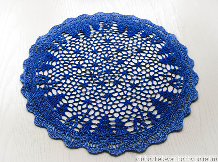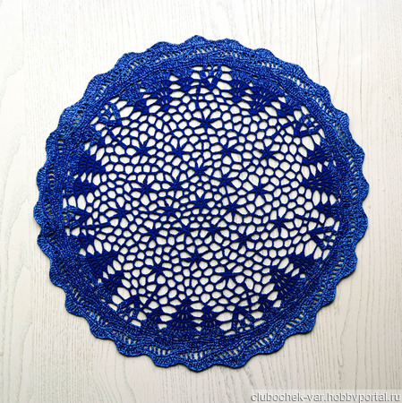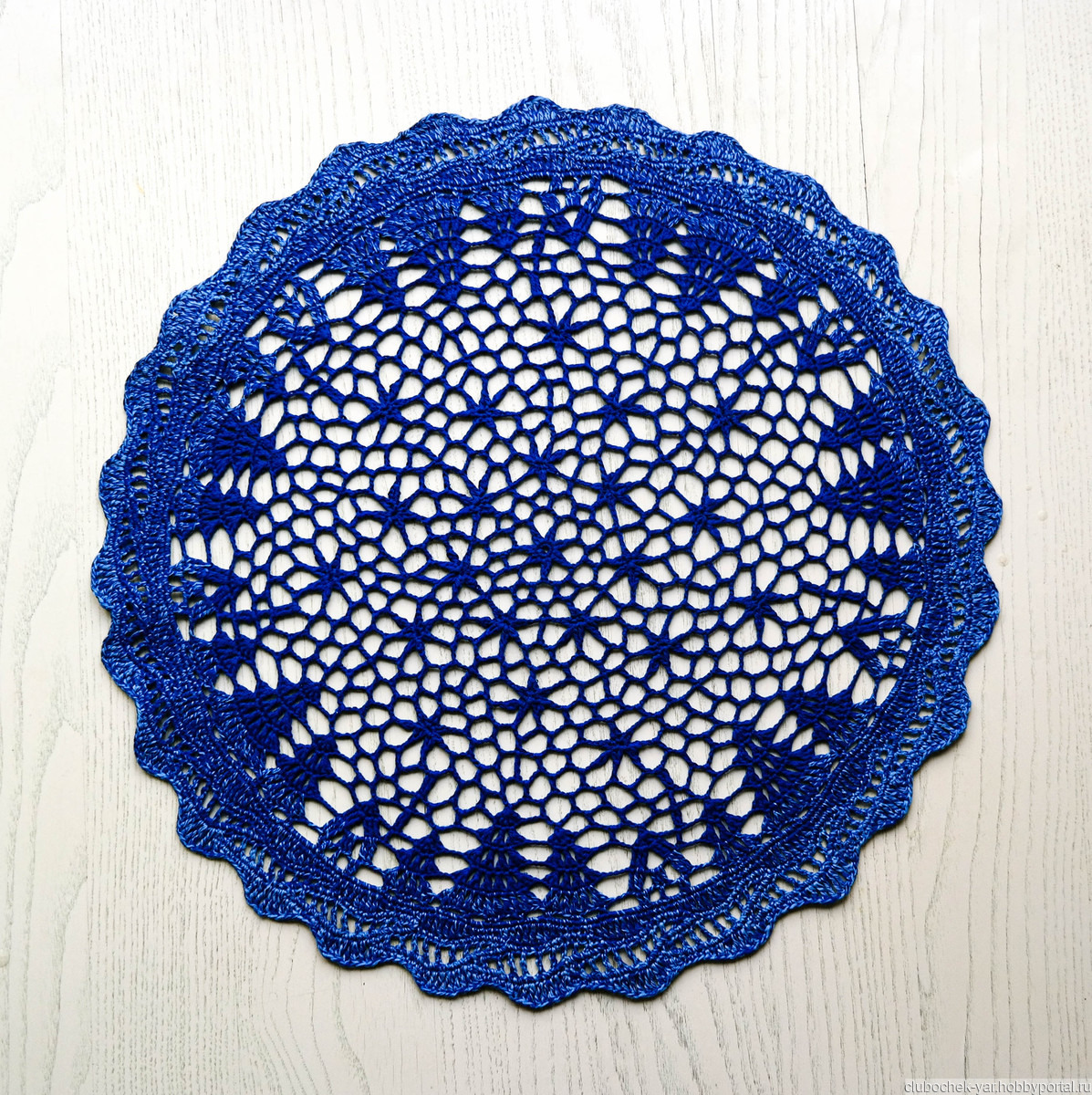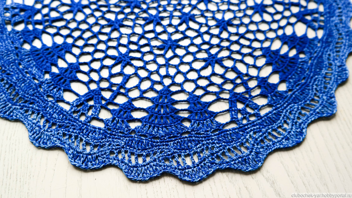 Салфетка "Зимняя" связана по авторскому дизайну Д. Дубчак. Использована турецкая пряжа Rosegarden Yarnart, 100% хлопок. Темно синий цвет переходит по краям в более светлый, размытый -темное звездное небо в обрамлении заснеженных ёлочек.