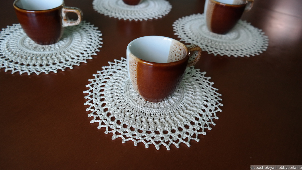 Салфетки связаны из ниток 100 хлопок цвета "слоновая кость" В диаметре 21 см. Благодаря интересному рисунку в интерьере смотрятся нежно и изысканно. Стоимость одной салфетки 500 руб. Возможно изготовление на заказ любого количества.