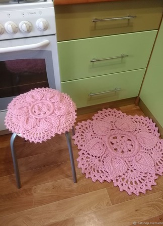 Карачаевская пряжа,это лучшая пряжа для таких изделий. Салфеточка мягкая, и отлично передаёт фактуру ручной работы. Легко стирается, не вытягивается, не садится после стирки, держит свою форму отлично.