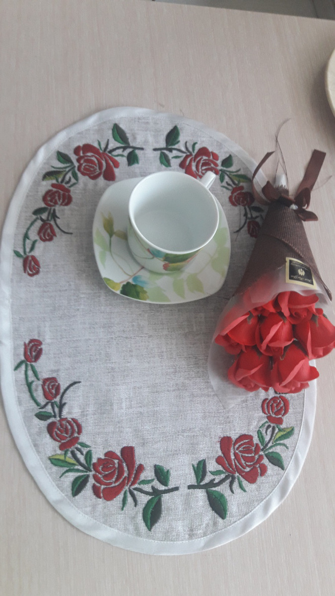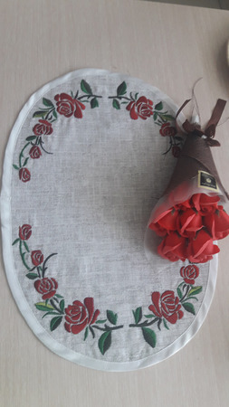 Декоративная салфетска с вышивкой "Алые розы".Вышивка выполнена гладью,вышивальными нитками.