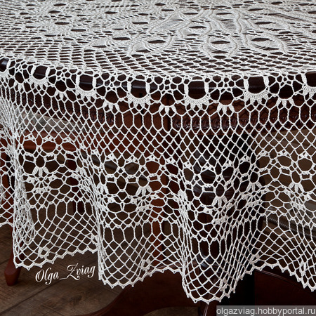 Скатерть связана из тонких ниточек тоненьким крючком. Прослужит долгие годы.
