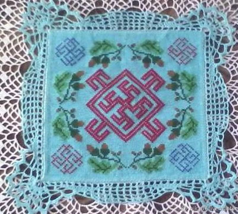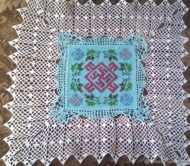 Скатерть-оберег ЦВЕТ ПАПОРОТНИКА , полностью вышита крестиком, обвязана нитками из 100% хлопка.