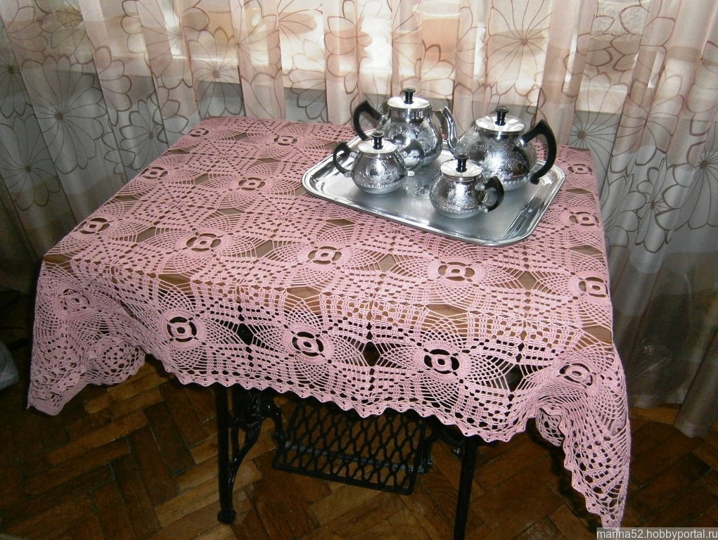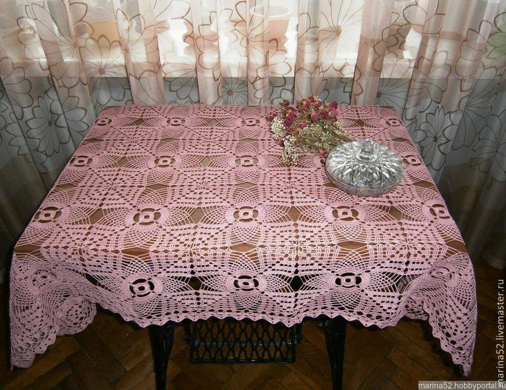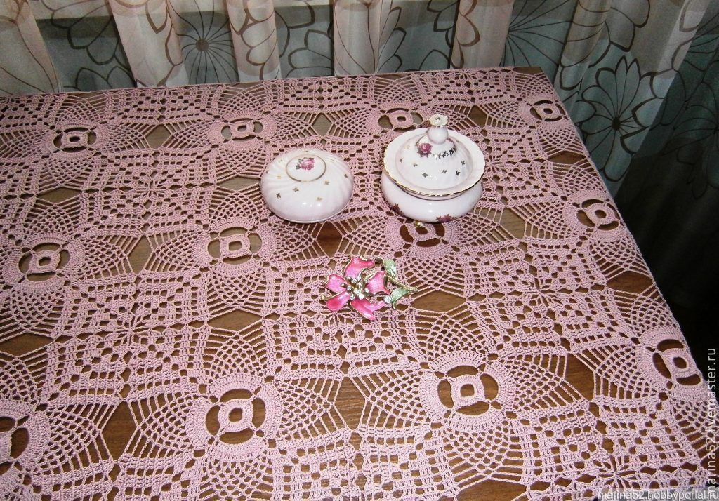 Скатерть выполнен крючком. связана из хлопка. Моя авторская работа. Красивая, нарядная скатерть цвета пыльной розы. На нижнем фото пример такой скатерти цвета слоновой кости.