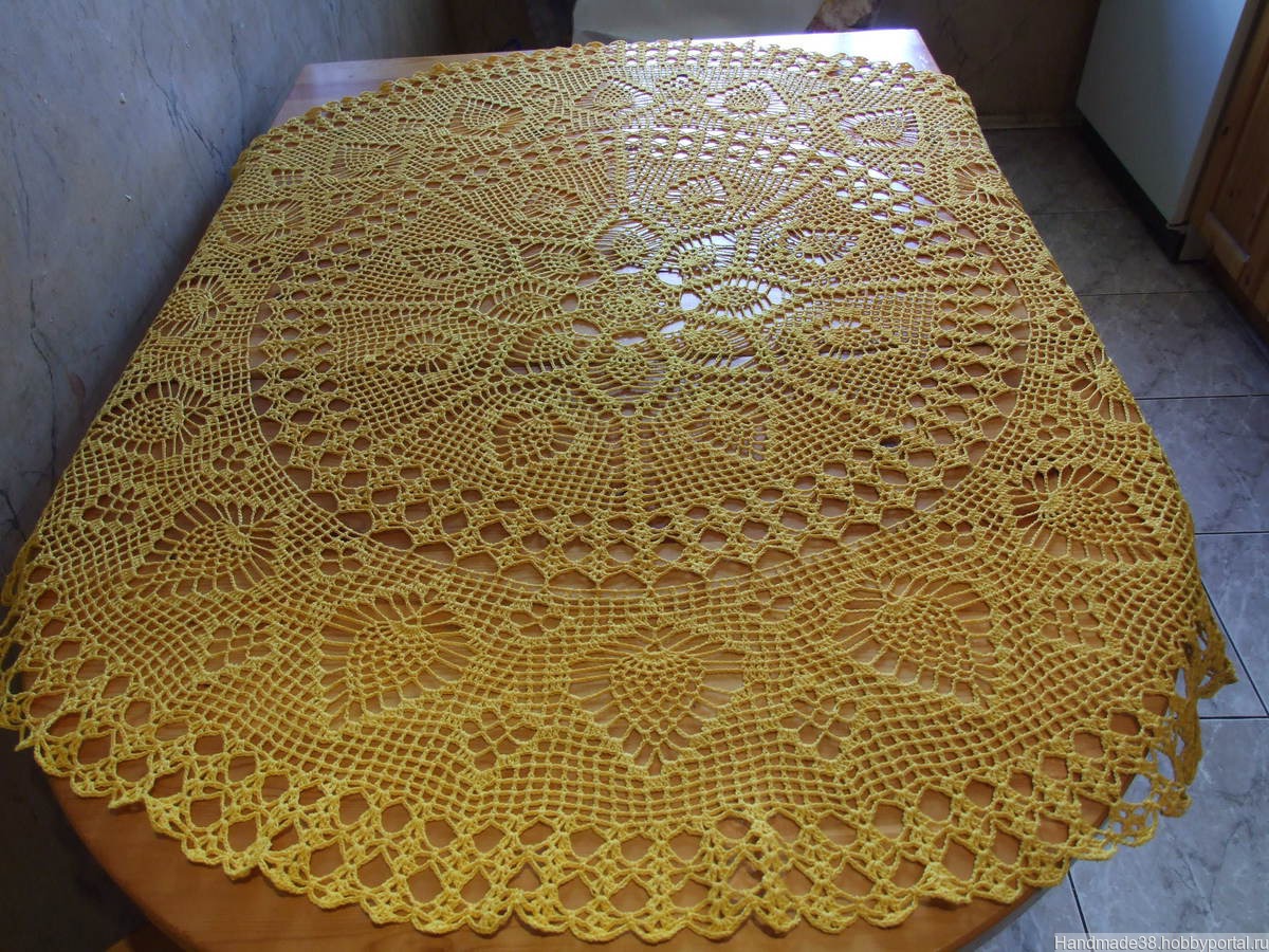 подарок на свадьбу, подарок, для интерьера, салфетка вязаная, скатерть круглая, скатерть вязаная, скатерть ажурная, скатерть кружевная, скатерть желтая
