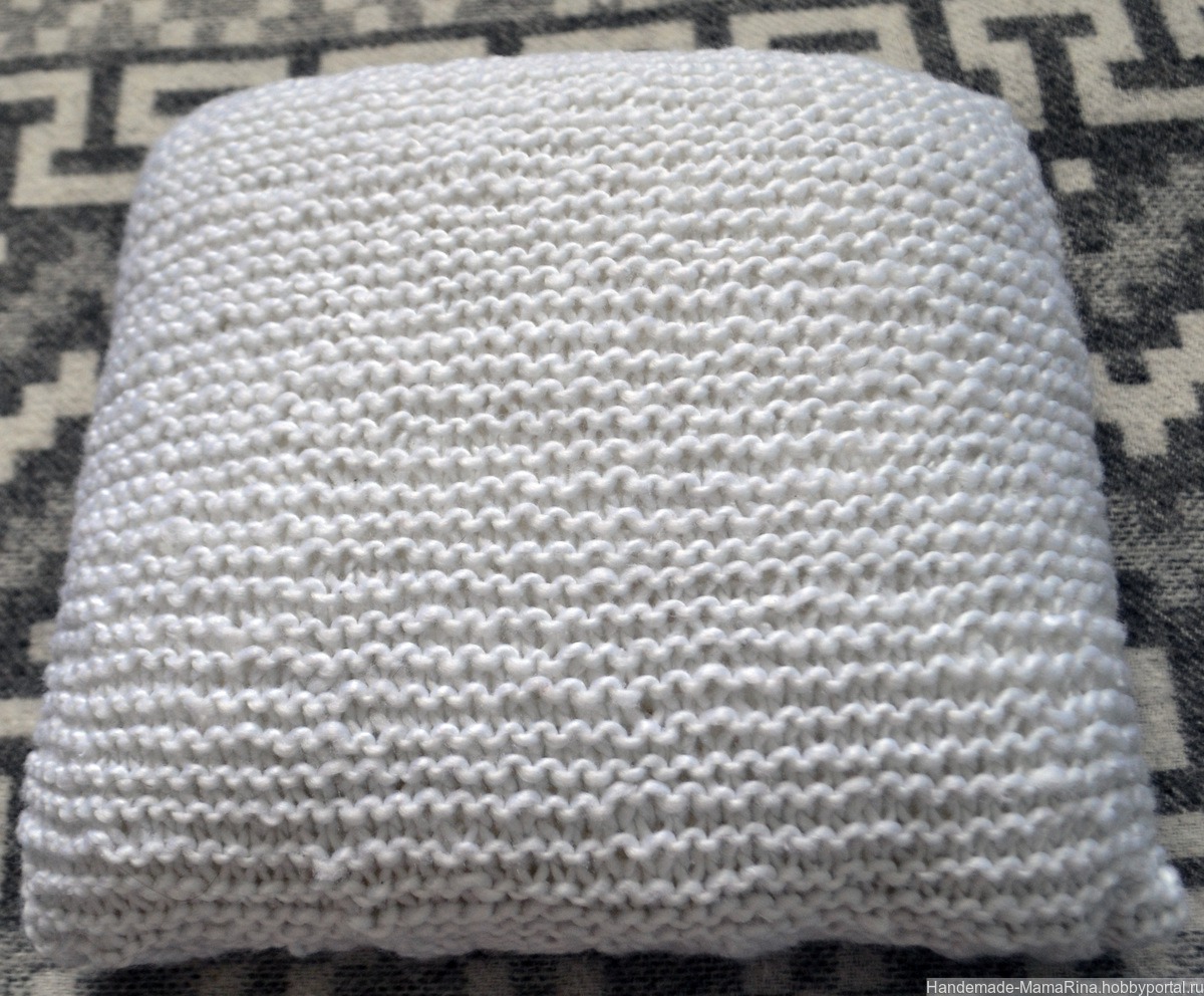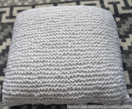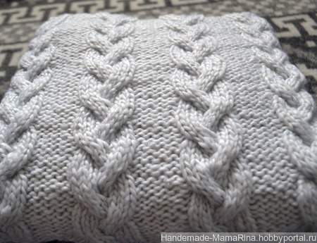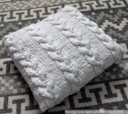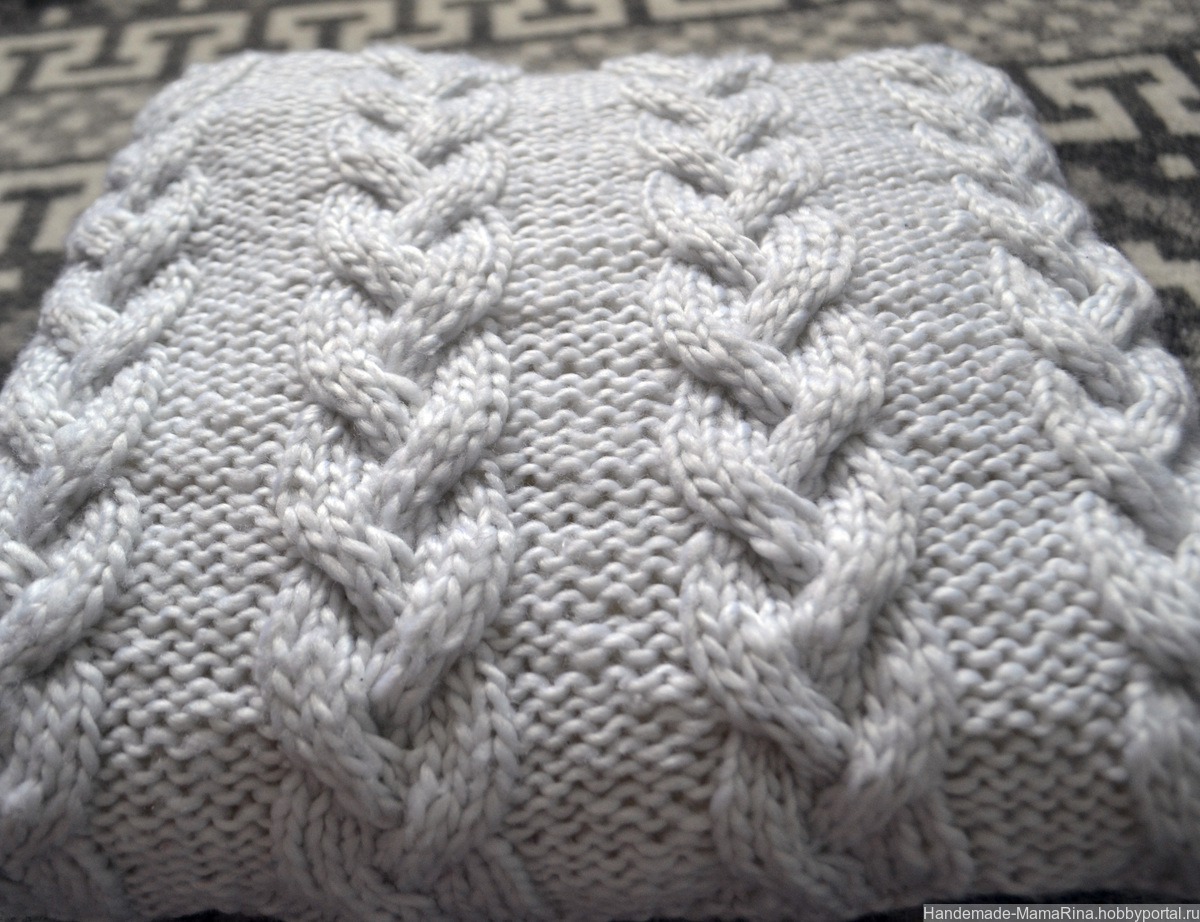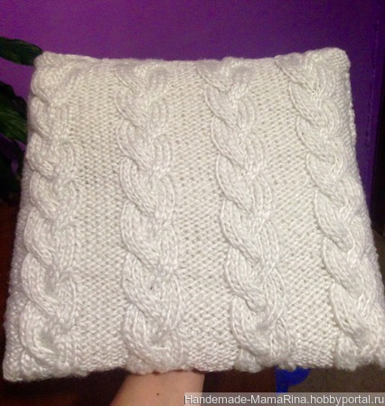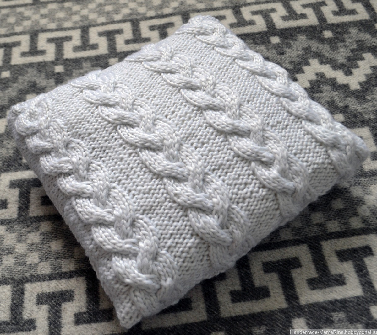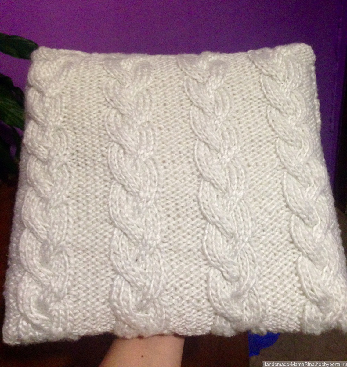Вязаная спицами декоративная подушечка добавит уюта Вашему интерьеру. Подушка связана спицами, два узора (косы и платочная вязка).