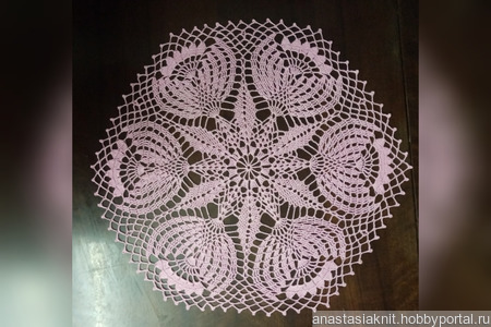 Салфетка связана крючком из мерсеризированного хлопка. Диаметр 51 см, подкрахмалена. Возможен повтор на заказ в любом цвете.