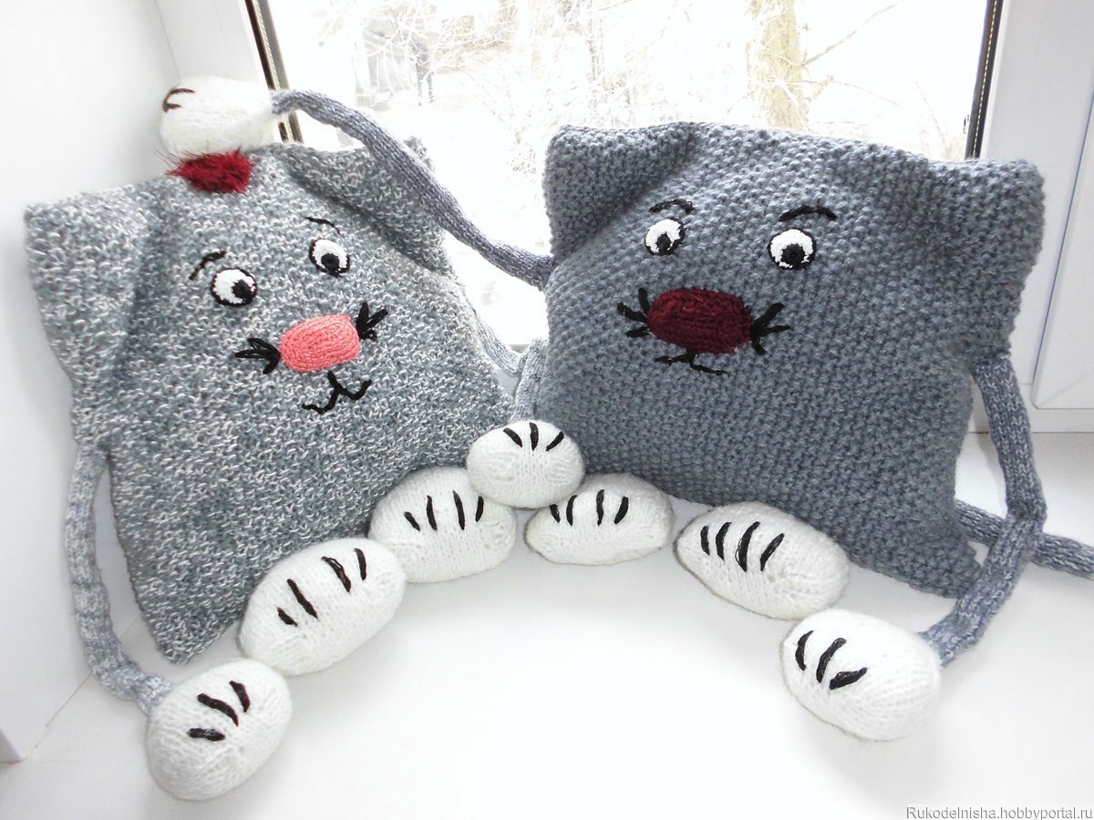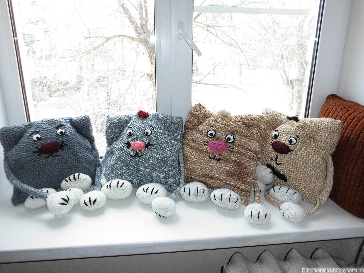 Вязаные котоподушки будут прекрасным подарком вашим близким или украсят детский уголок. Связаны из мягкого детского акрила. Наполнитель холофайбер. Цена указана за одну подушку, но при покупке двух и более - скидка.
