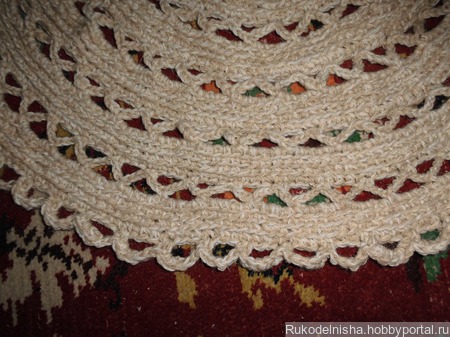 Мягкий приятный наощупь круглый прикроватный коврик из чистошерстяной пряжи цвета экрю.