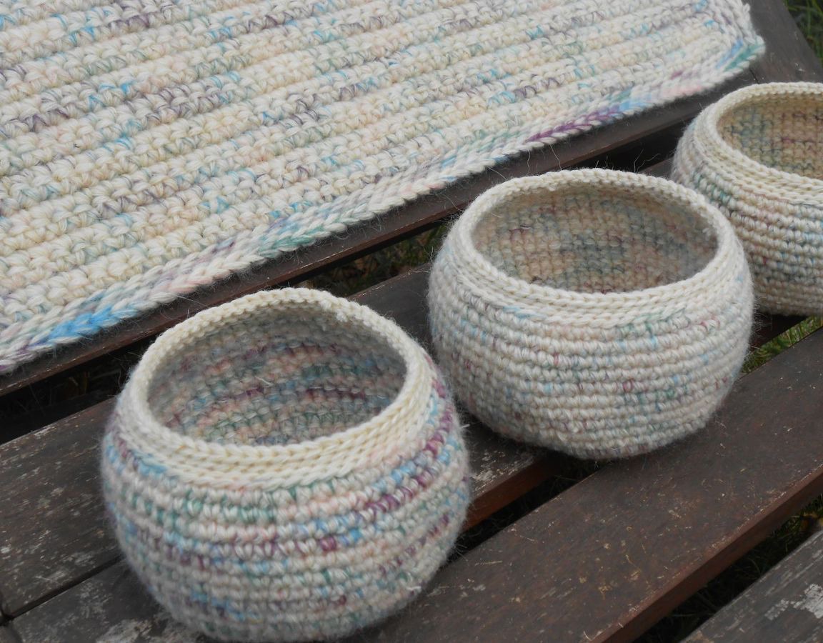 Для ансамбля можно дополнительно приобрести вязаные корзинки в цветах коврика.