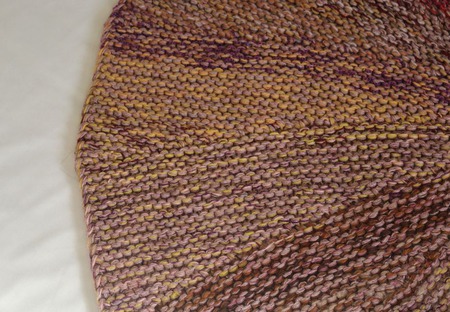 Связан спицами из ниток разного состава, наличие среди них нитей с синтетической составляющей, дает коврику шанс на долговечность.