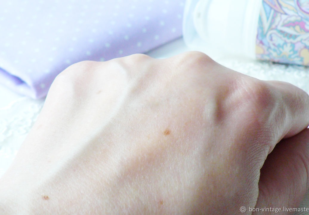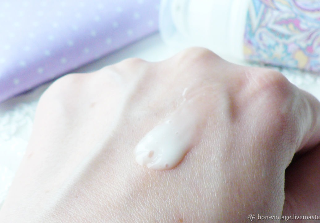 Легкий крем-гель средней плотности. Легко наносится, быстро впитывается. Не дает ощущения жирности, липкости, пленки. Имеет едва уловимый аромат розы.