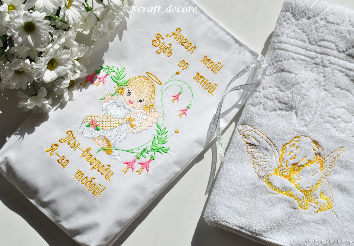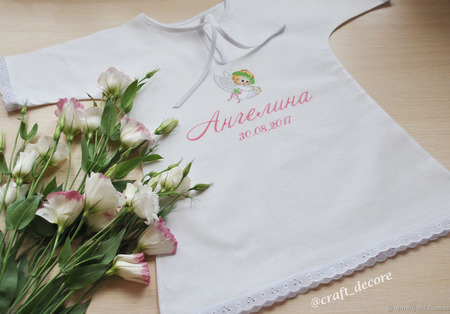 Крестильная рубашка из 100% хлопка.Цвет вышивки любой. Размер единый 0-12 мес. Рубашку можно дополнить чепчиком, салфетками для крестных, мешочком для хранения.