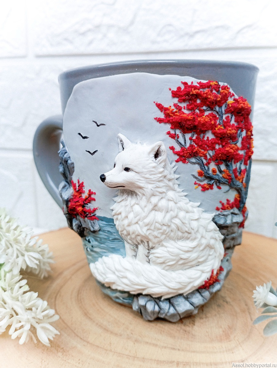подарок на день рождения, сувенир, подарок, хендмейд, кружка, лиса, на заказ, полимерная глина, кружка на заказ, руная работа, декор кружки, декор кружки из полимерной глины