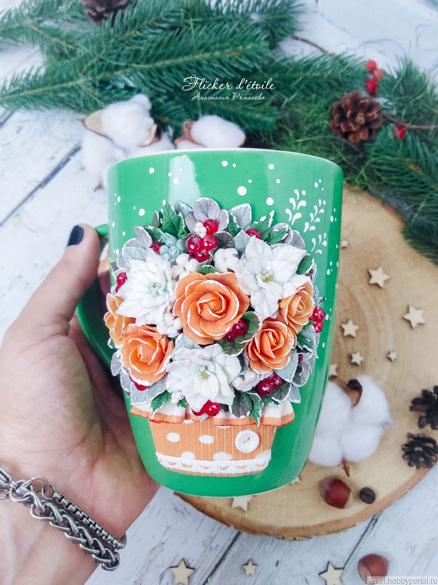 ручная работа, сувенир, подарок, хендмейд, на заказ, смоленск, кружка с декором, декор кружки из полимерной глины, изделие из полимерной глины