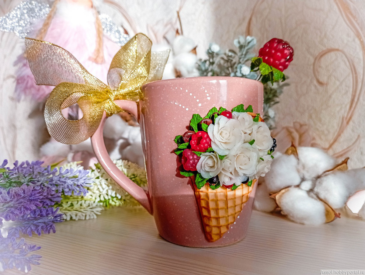 подарок на день рождения, сувенир, подарок на 8 марта, подарок жене, на заказ, полимерная глина, подарок женщине девушке, купить, на заказ по фото, смоленск, кружка с декором, кружка с декором из полимерной глины