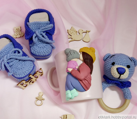 подарок на день рождения, подарок маме, подарок на любой случай, мама и малыш, кружка с декором, декор кружки из полимерной глины