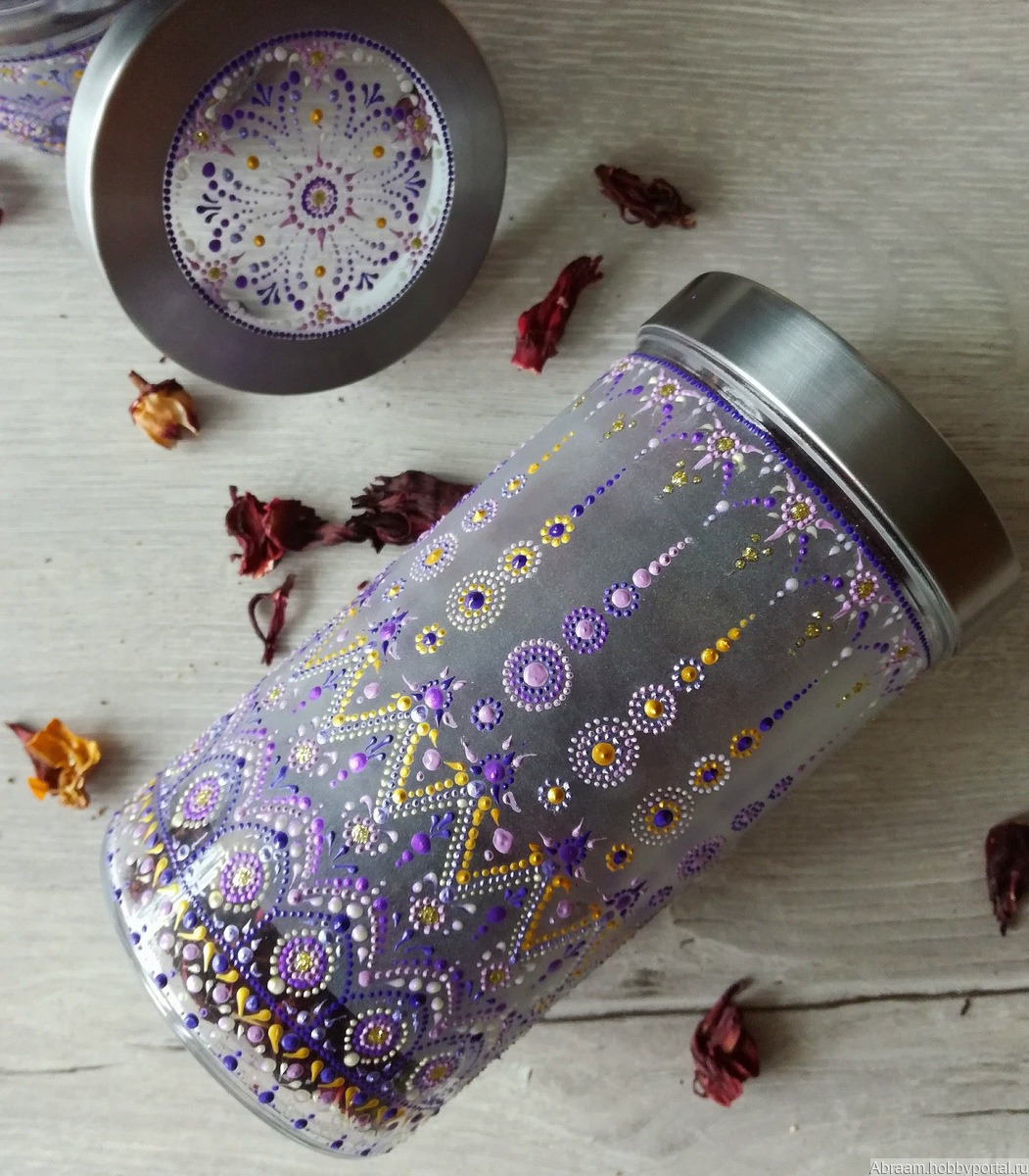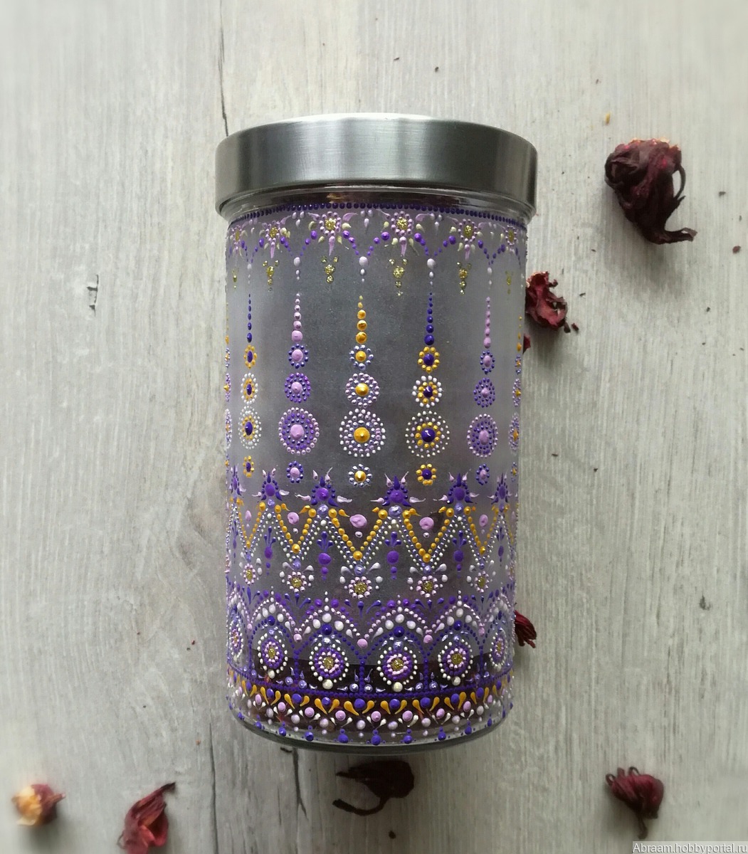 Баночка для сыпучих продуктов, украшенная вручную точечной росписью. Полностью функциональна. Роспись закреплена обжигом. Этой баночки нет в наличии, но возможен повтор.
