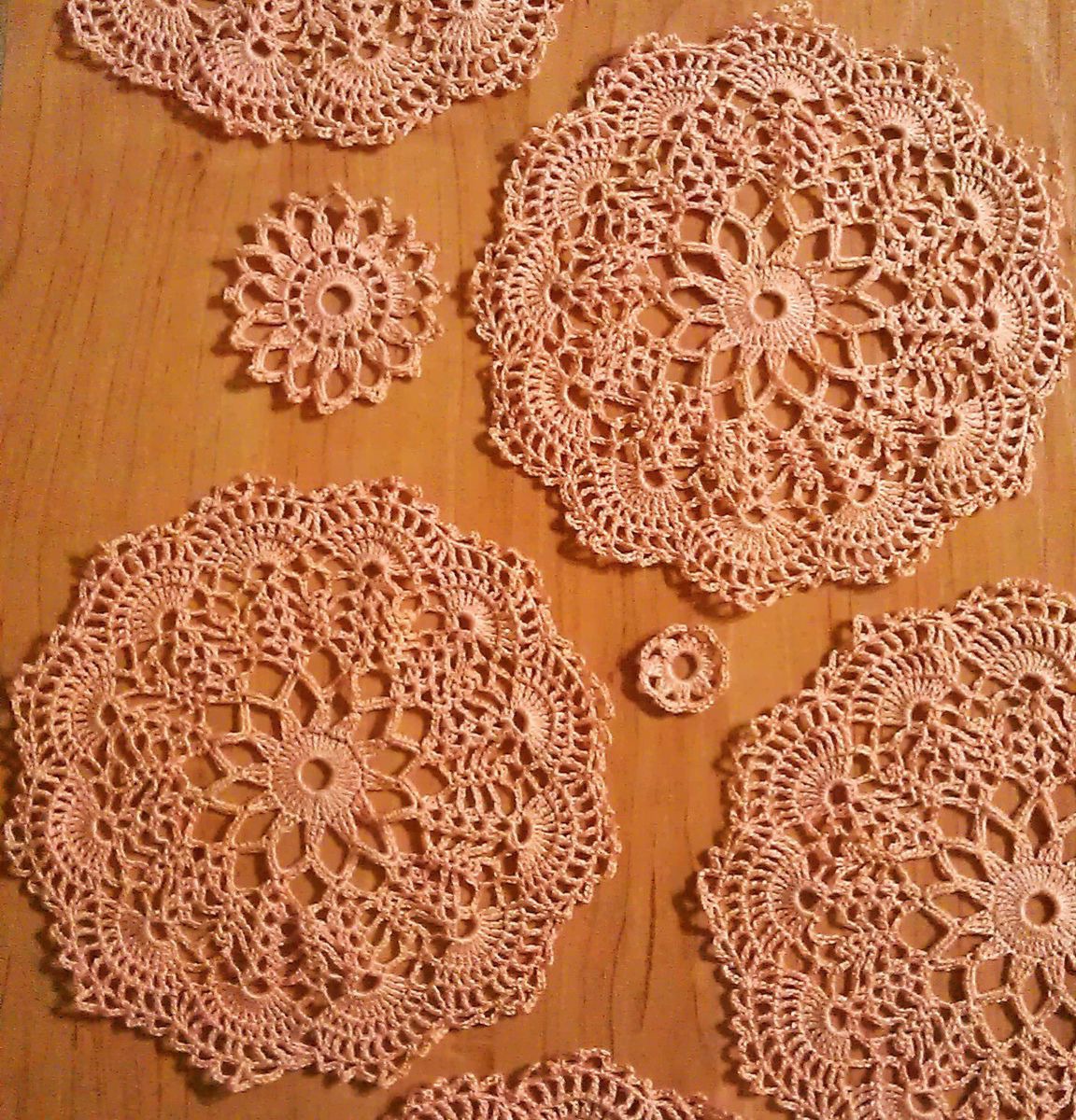 Набор для сервировки чаепития, всего шесть салфеточек. Диаметр каждой 20 см. Цвет нежный персиковый. Идеально подойдет для милых посиделок за чашечкой чая. Или волшебных кукольных чаепитий! Салфетки связаны крючком нежной нитью Ирис. Возможен повтор в других цветах и материалах. Оплата на карту сбербанка.