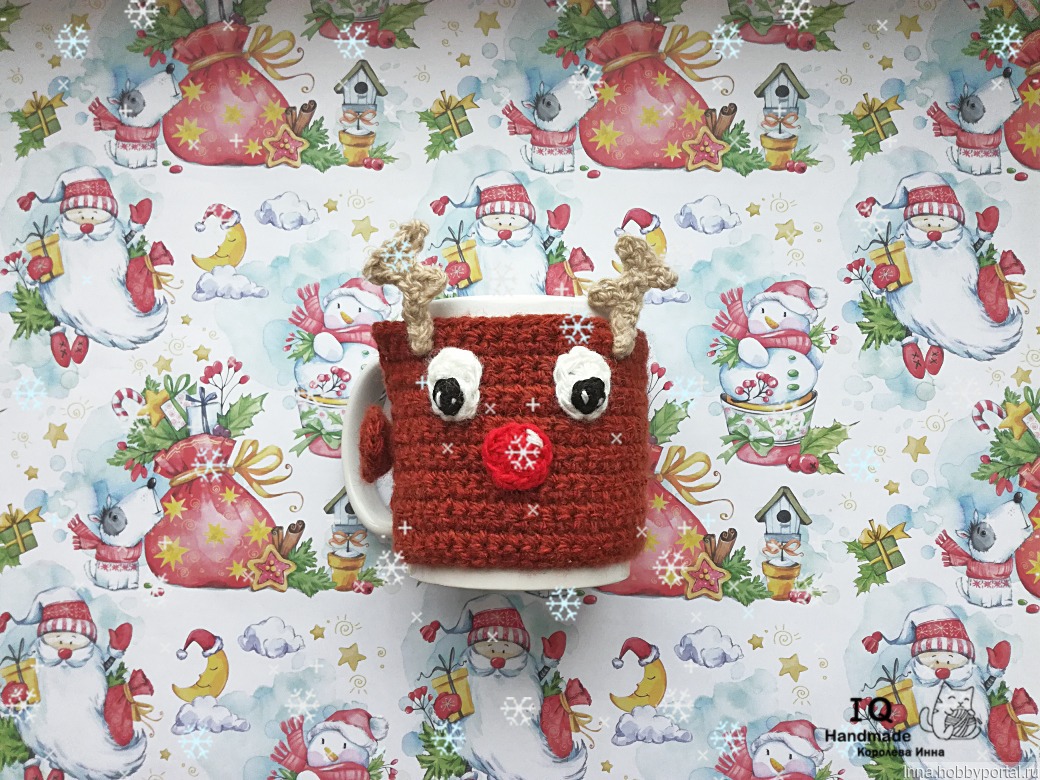 Новый год, интерьер, подарок, ручная работа handmade, декор, уютный дом, уютный подарок, олененок, грелка на кружку, чехол для кружки, манжет для кружки, свитер для кружки