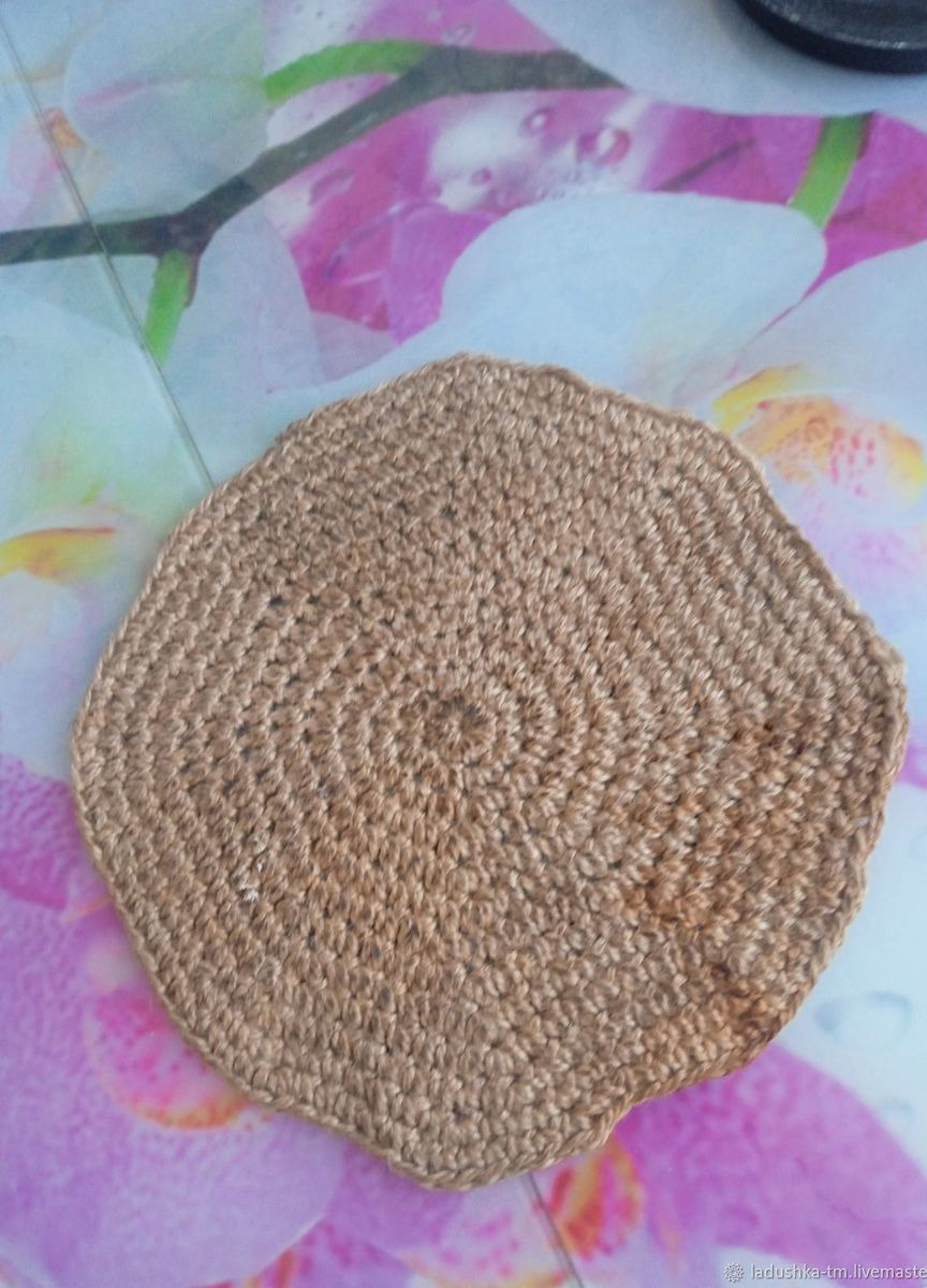 Даже в будние дни на кухне или в столовой должно быть красиво. Это залог отличного настроения и прекрасное начало дня. Различные вязаные мелочи для интерьера - прекрасная возможность создать комфорт и уют практически без усилий. Кроме этого, различные подставки и салфетки выполняют и чисто практическую функцию: они защищают полированную поверхность мебели от пятен и царапин, особенно если это что-то горячее. Салфетка реально выдерживает температуру горячей сковороды, снятой с плиты. Это проверено на личном опыте. На своей кухне больше года назад заменила все подставки такими джутовыми салфетками. Круглая вязаная салфетка из джутовой пряжи. Ручная работа