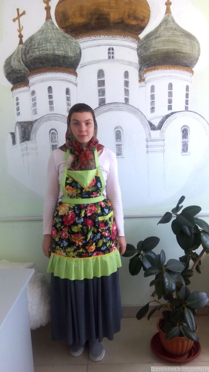 Фартук женский из плотной хлопчатобумажной ткани с отделкой из х/б.