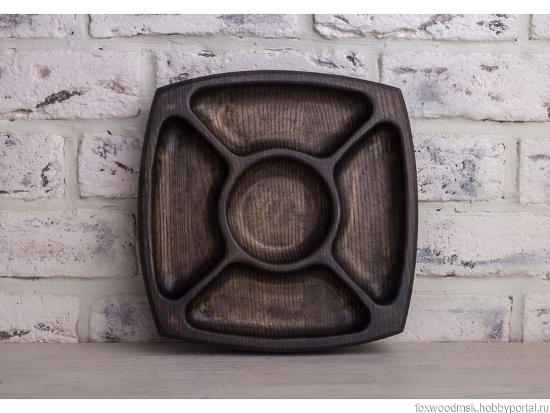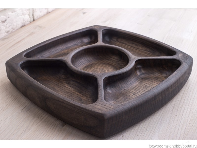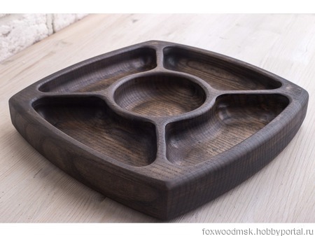 Отличная глубокая менажница выполненная из натурального ясеня в благородном угольном цвете. Она прекрасно подойдет для подачи соленей, любого типа закусок, орешков и конфет. Она может стать центром большого застолья. Хотя она также будет полезна и при совместном просмотре какого-либо сериала или футбольного матча.