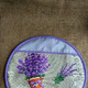 Салфетка размером 31.5 см, уплотнена дублирином и ватином в два слоя - может служить подставкой под горячее. Украшена тесьмой вьюнок и кружевом.