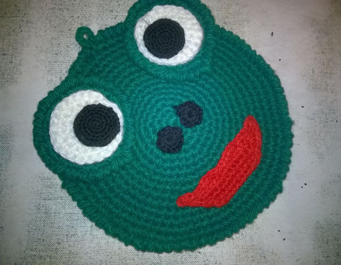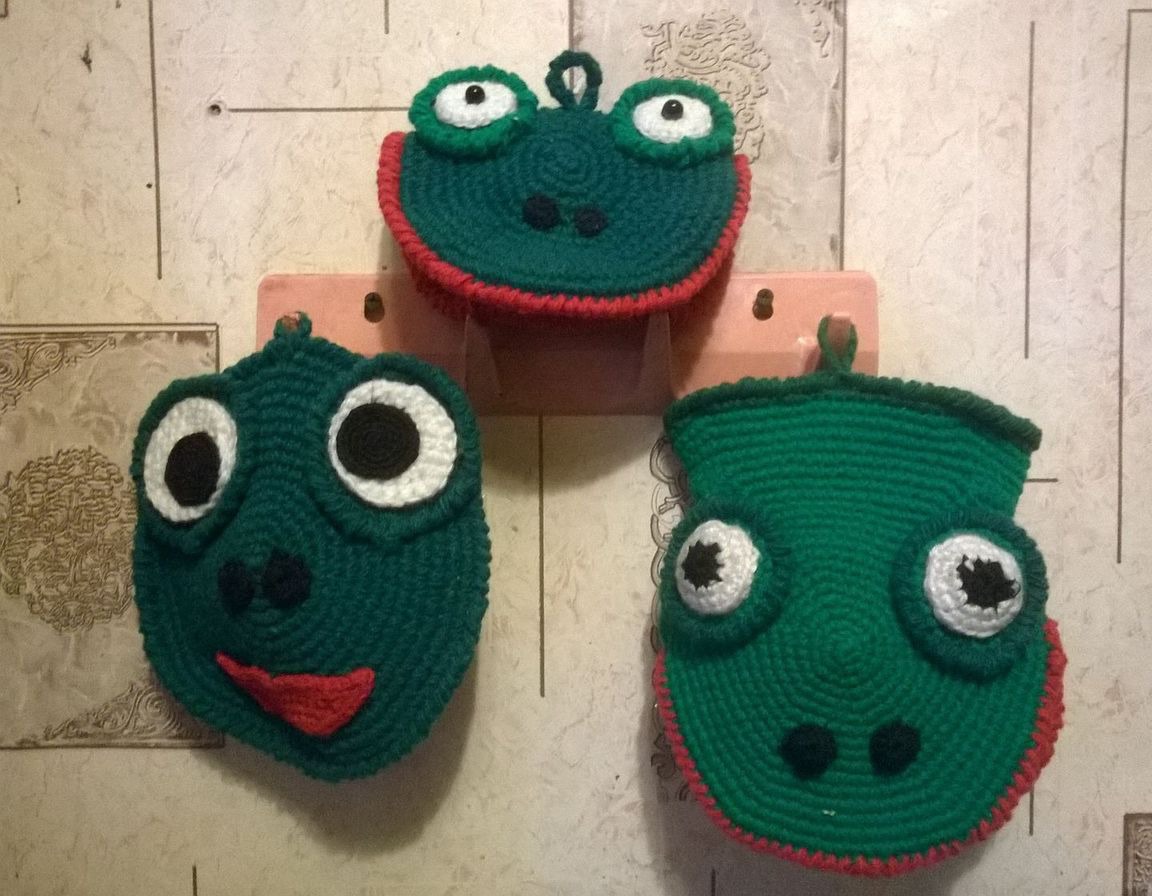 зелёный, комплект, лягушка, кухня, комплект вязаный, для кухни, вязание крючком, акрил, для дома и интерьера, подставка под горячее, прихватки, подставка, пряжа акрил