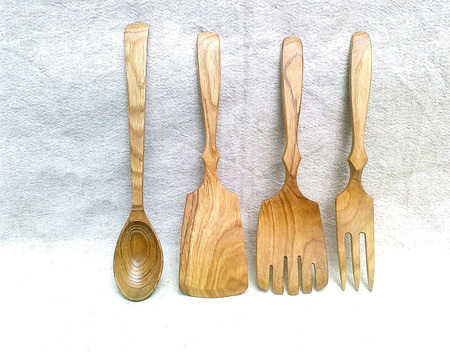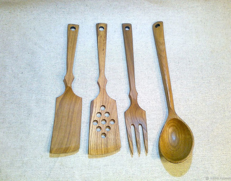 лопатка, вилка для сковороды, лопатка для салата, ложка помешать, посолить, попробовать, все из дуба, с пропиткой льняным маслом