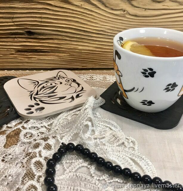 подарок на новый год, подставки под чашки, коты, символ нового года, набор подставок под чашки
