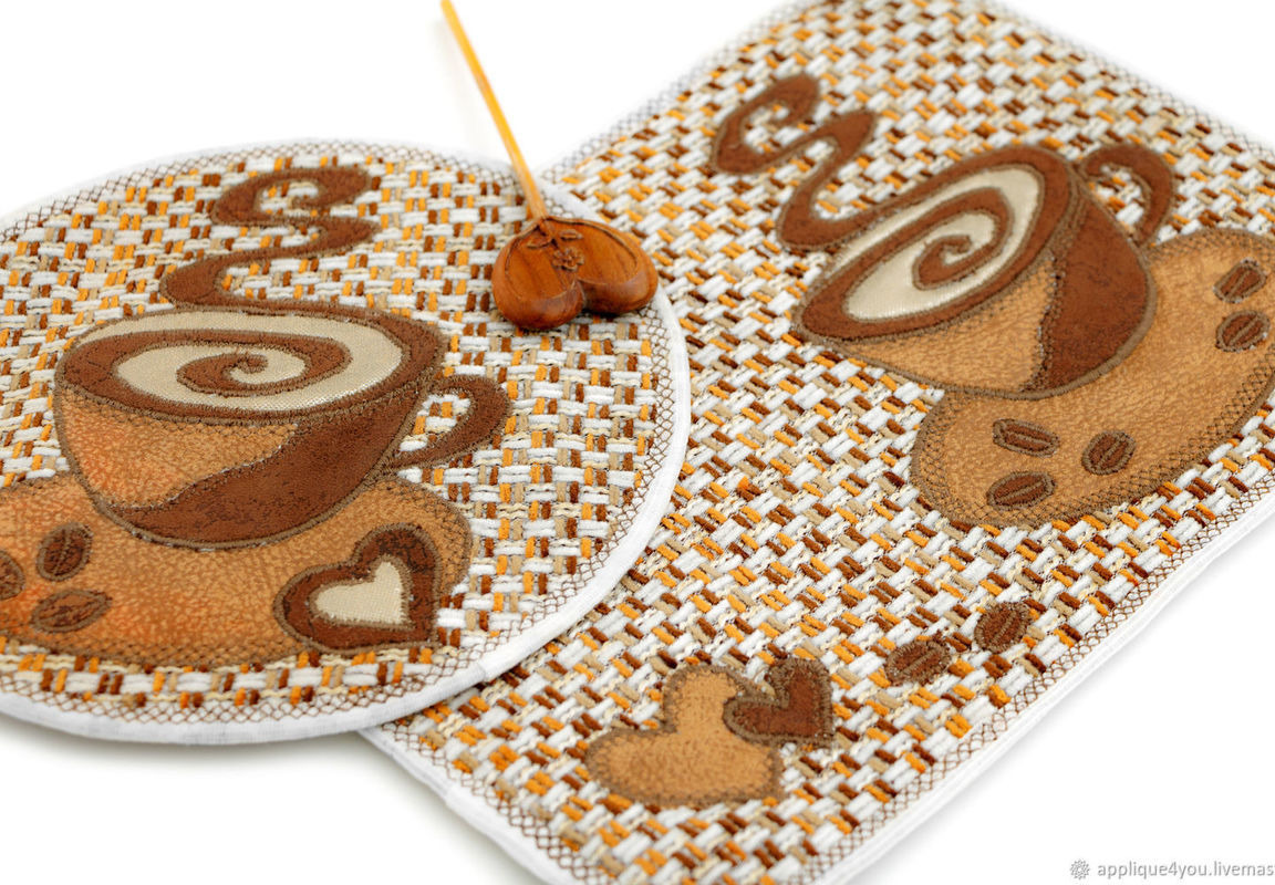 бежевый, подарок на 8 марта, кухня, подарок на любой случай, грелка, масленица, пасха, кофе, прихватка, апликация, женщине подарок, набор кухонный, зерна кофейные, пэчворк прихватка