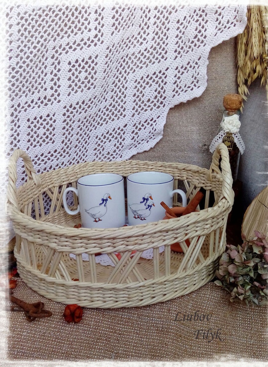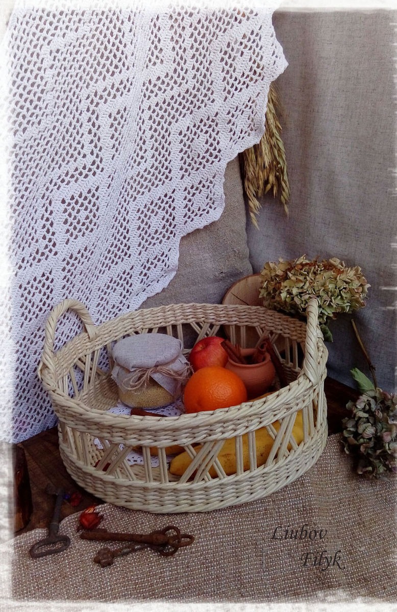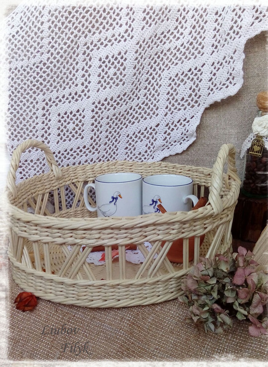 Продано. Плетеный ажурный поднос " Нежный завтрак". сплетен из чистой бумажной лозы в приятном, нежном цвете светлый беж. Прочный, держит форму и достаточно вместительный. Украсит Вашу кухню или гостинную. Легкий, воздушный ажур подарит хорошее настроение.