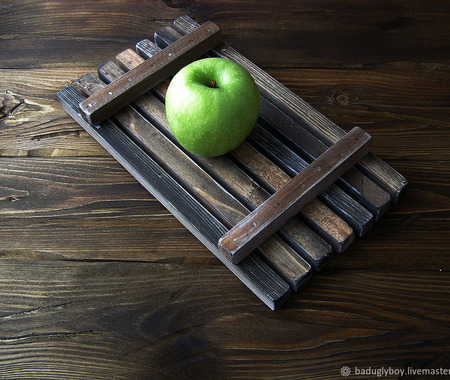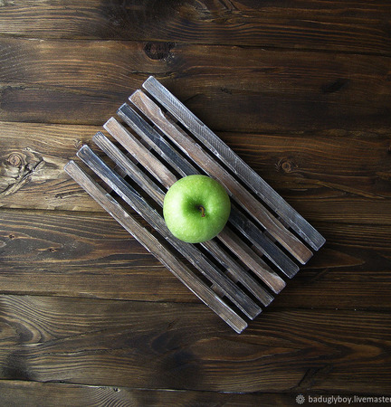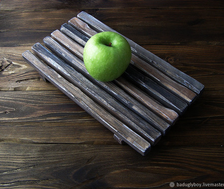 Перед вами очаровательный небольшой реечный поднос. Идеально впишется в любую композицию. Каждая реечка состарены, края обтесаны. Покрыт морилкой на водной основе и воском.