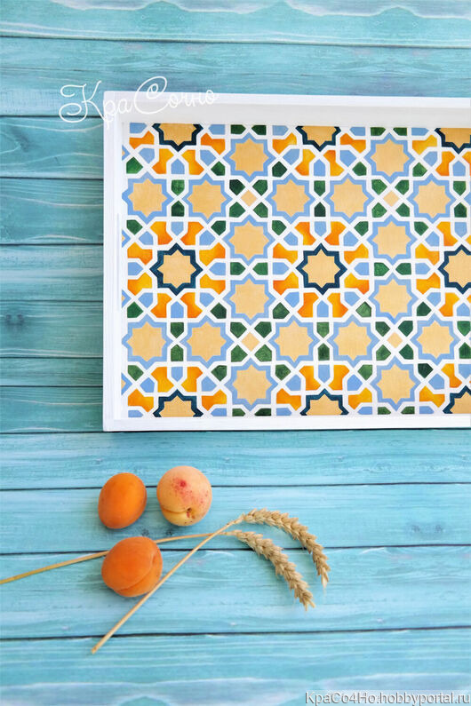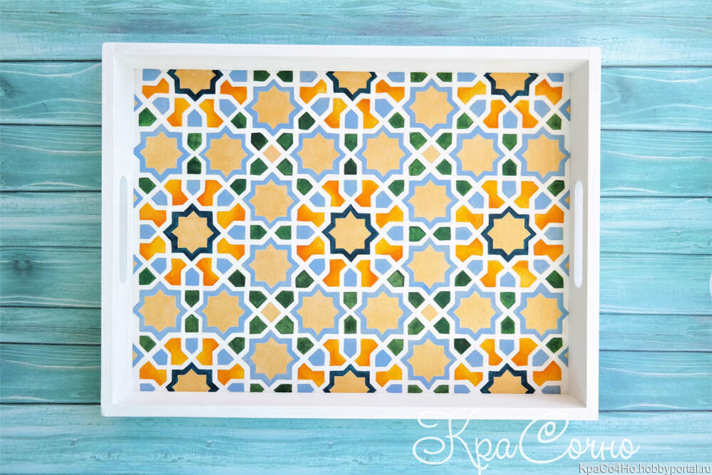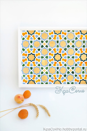 Деревянный поднос для завтрака с орнаментом в марокканском стиле.