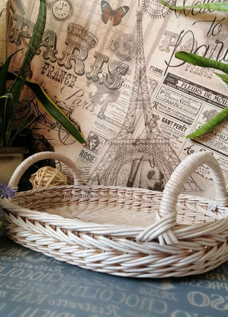 Плетёный поднос с косой выполнен в технике "плетение из бумажной лозы".